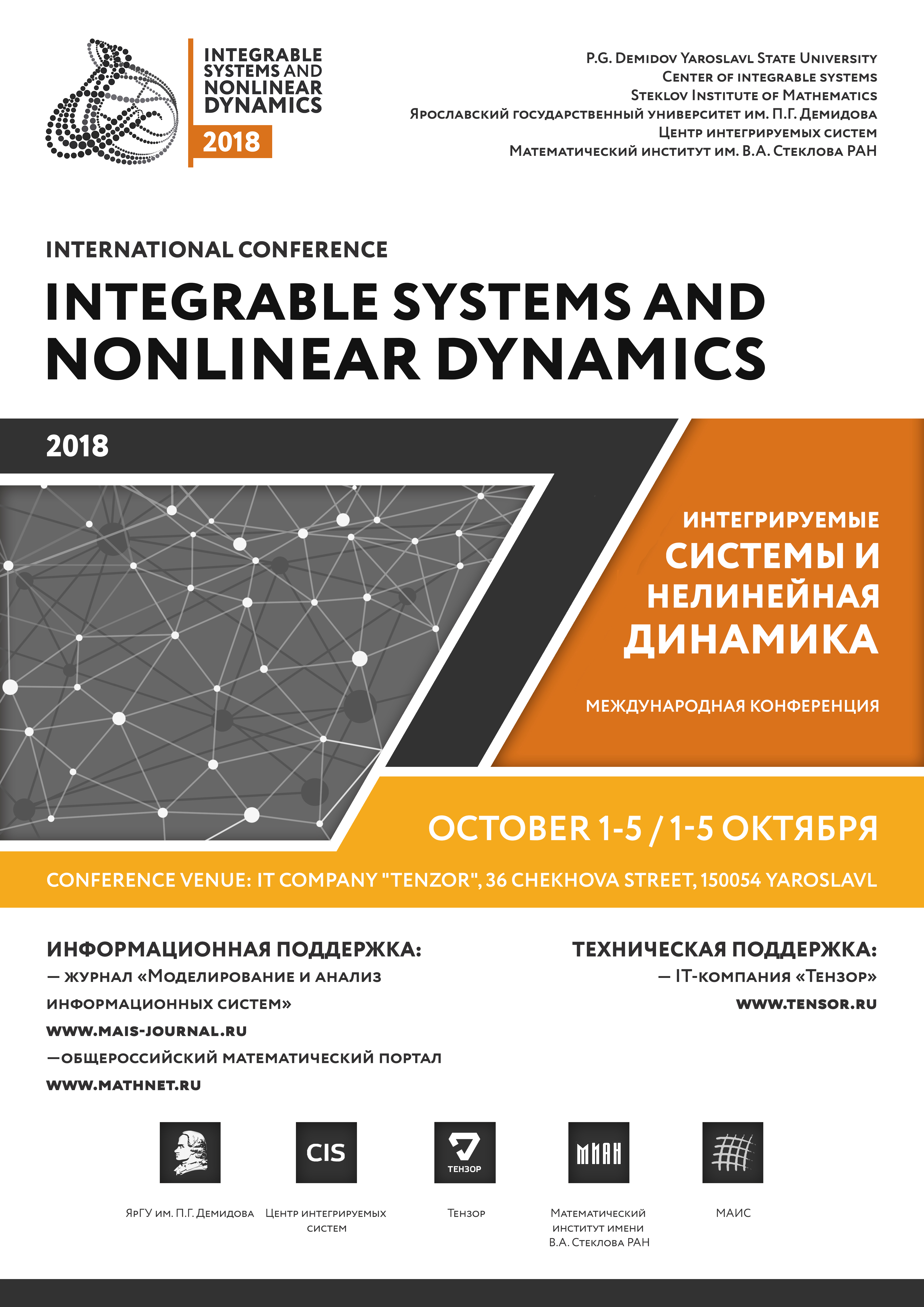 Международная конференция по интегрируемым системам и нелинейной динамике (1–5 октября 2018 г., г. Ярославль)
