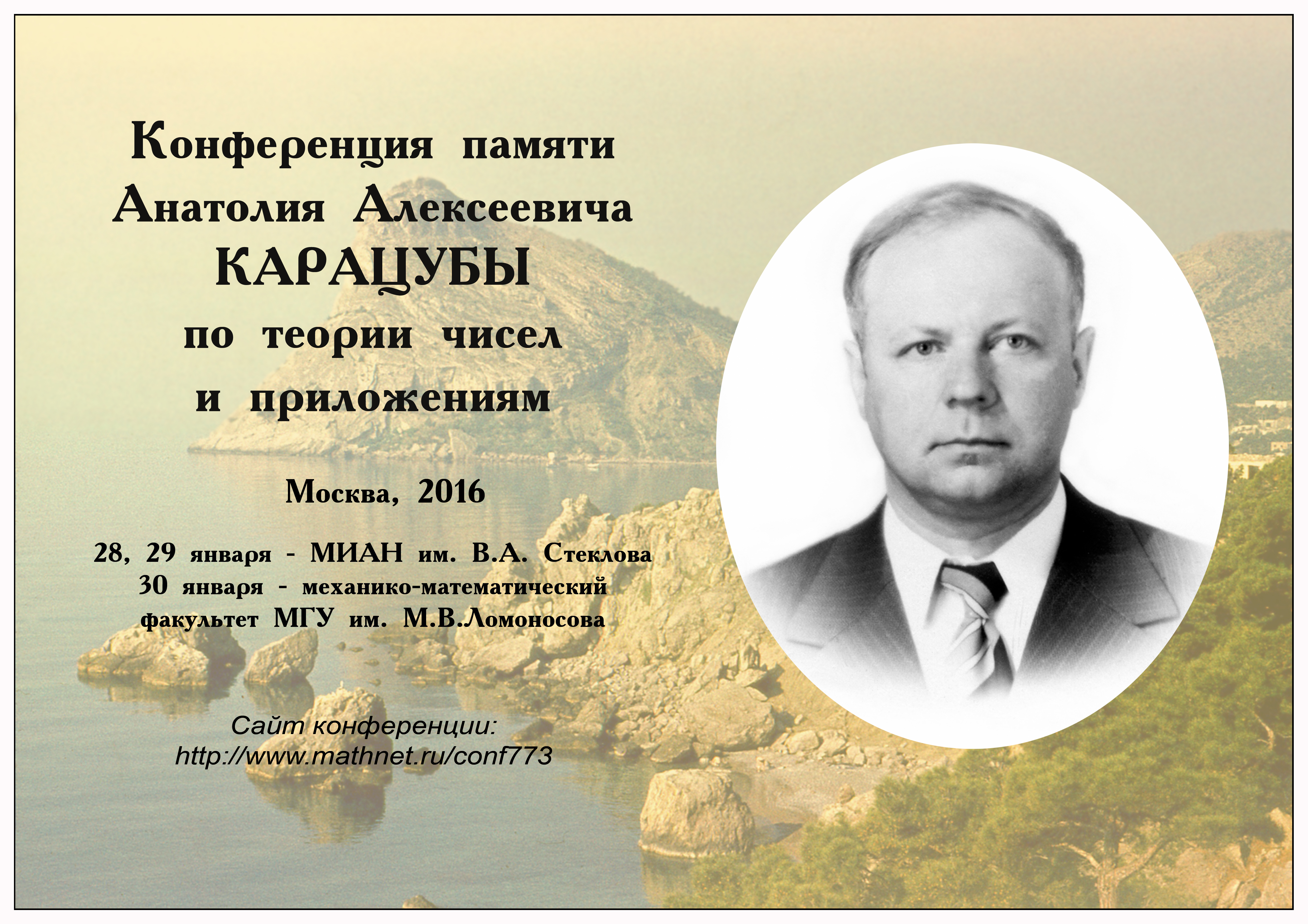 Конференция памяти Анатолия Алексеевича Карацубы по теории чисел и приложениям, 2016 (28–30 января 2016 г., ФИЦ «Информатика и управление», МИАН, механико-математической факультет МГУ, г. Москва)